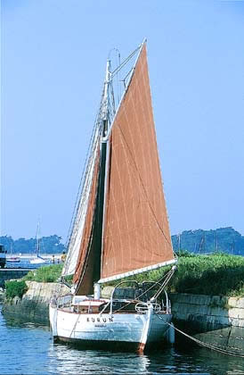 Le "Kurun" sous voiles : grand voile, trinquette et foc.